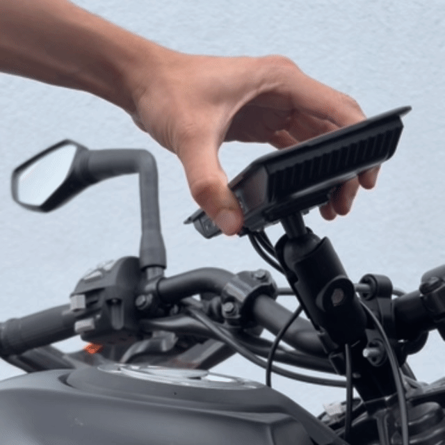Urządzenie pełni funkcję uchwytu z ekranem do nawigacji – nie ingeruje w systemy motocykla ani nie wymaga homologacji. Można go bezpiecznie i legalnie używać podczas jazdy.